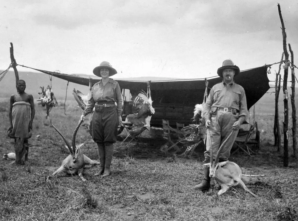 Matty og Christian Thams på jakt i Afrika. Foto: Ukjent / Sverresborg Trøndelag Folkemuseum.