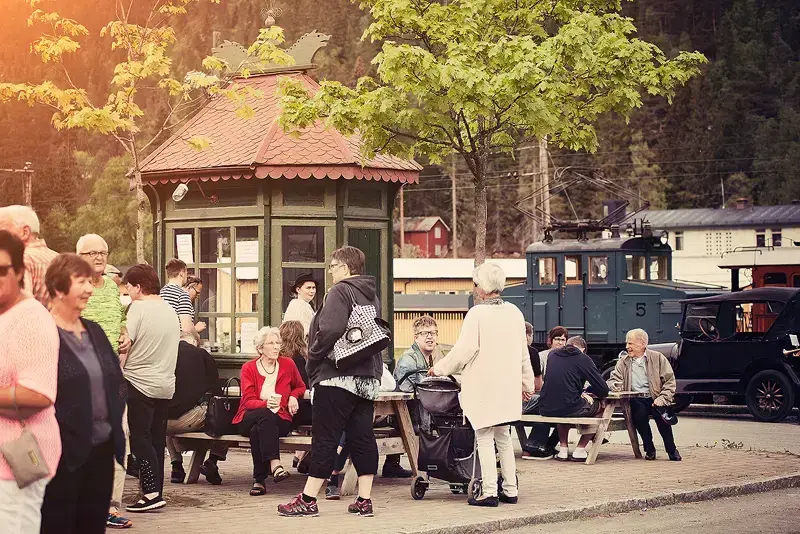 Thamshavnbanen, Svorkmo stasjon, folk på perrongen Stine Aasløkk | Orkla Industrimuseum - 4/13